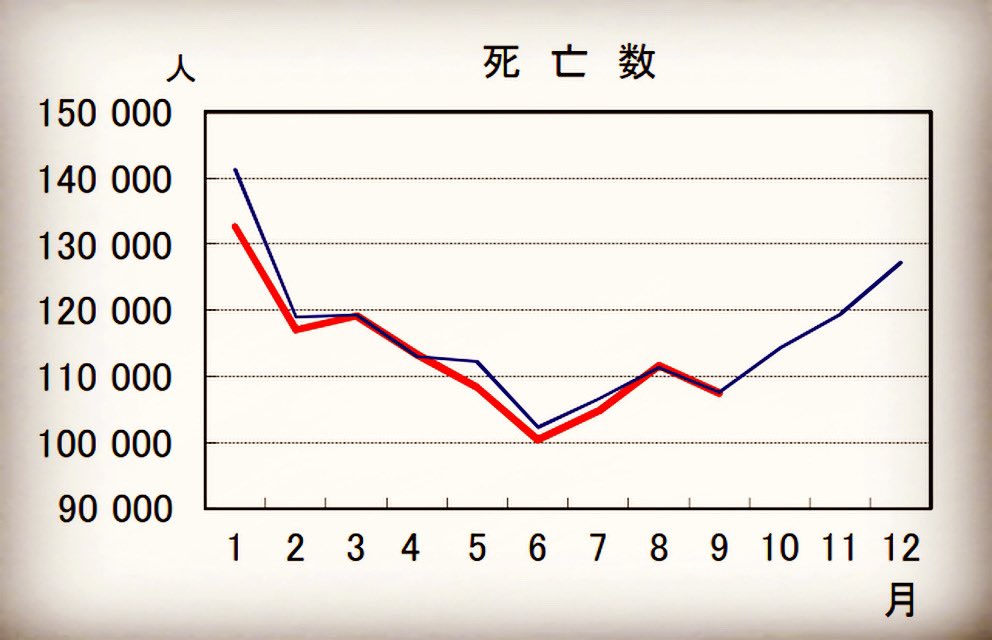 今年と去年の総死亡数の比較