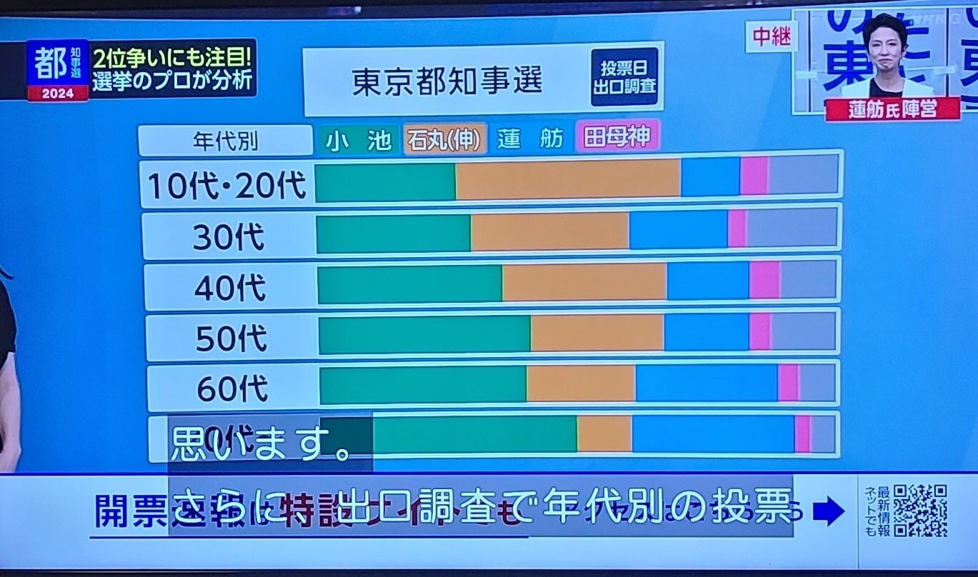 【速報】東京都知事選挙世代別支持者一覧WVWVWVWVWVW