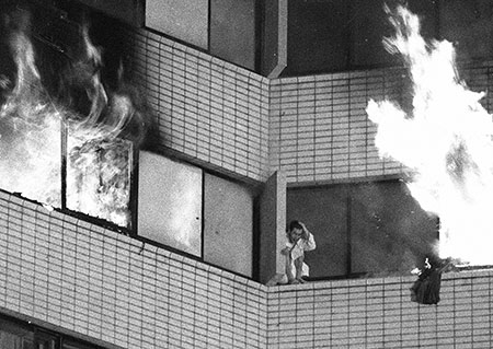 昔の日本のビル火災だかホテル火災でも火から逃れようと窓に出て耐えられず結果落下死みたいなのあったらしいやん