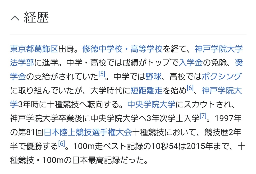 ウィキペディア見た感じやと、陸上始めたのが遅かったから