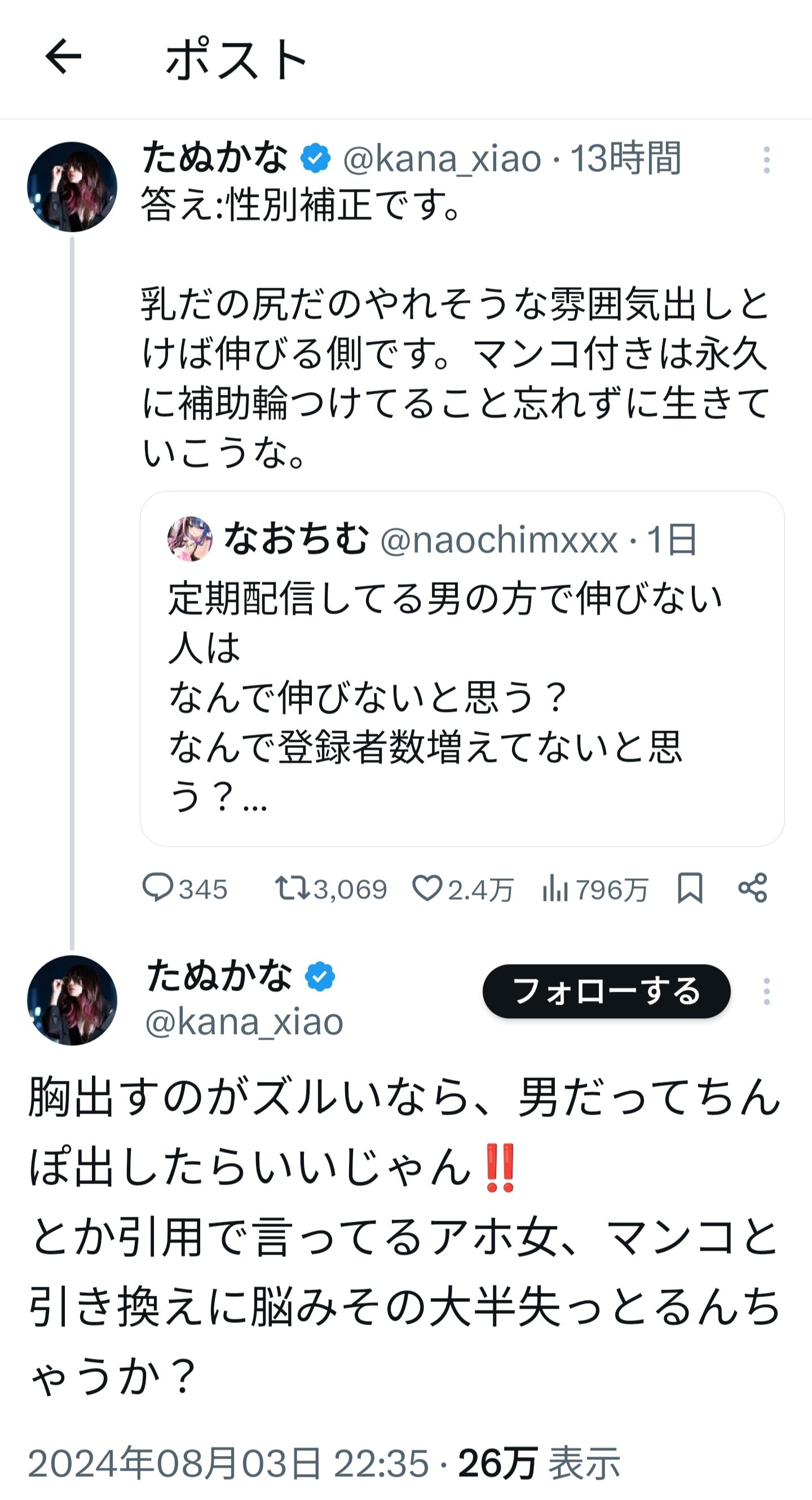 たぬかなは男も女も関係なく弱者を殴るから真の平等主義者なんだよね