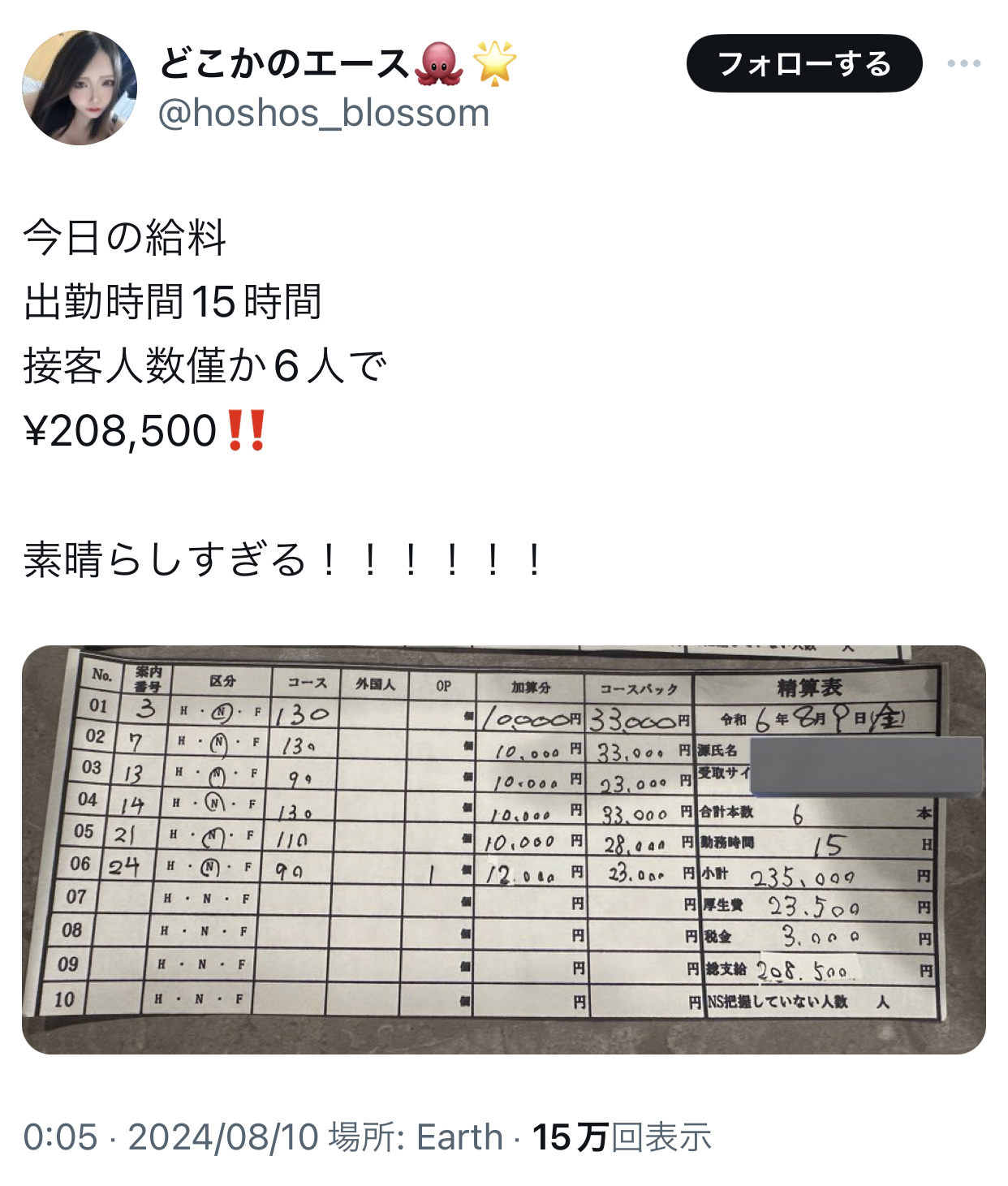 そいでホストに190万渡すんやろ?すんごい経済やな
