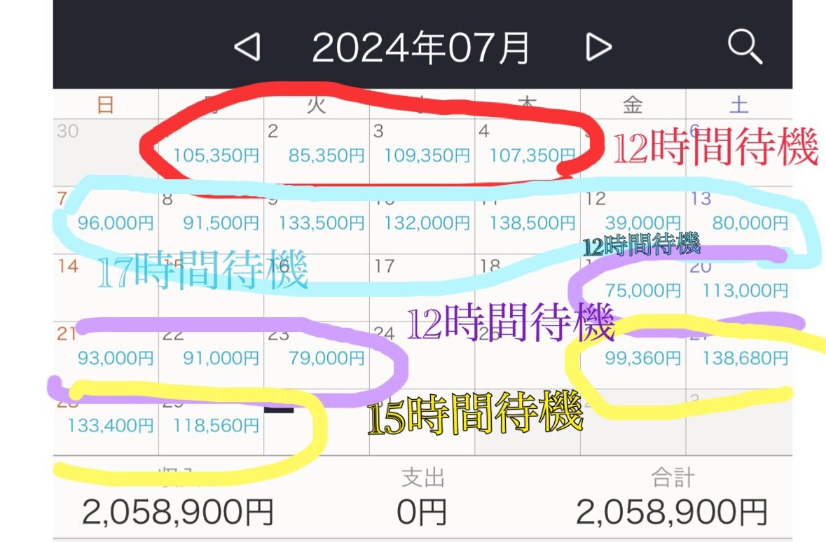 待機時間がメインだから実労時間は5時間くらいか