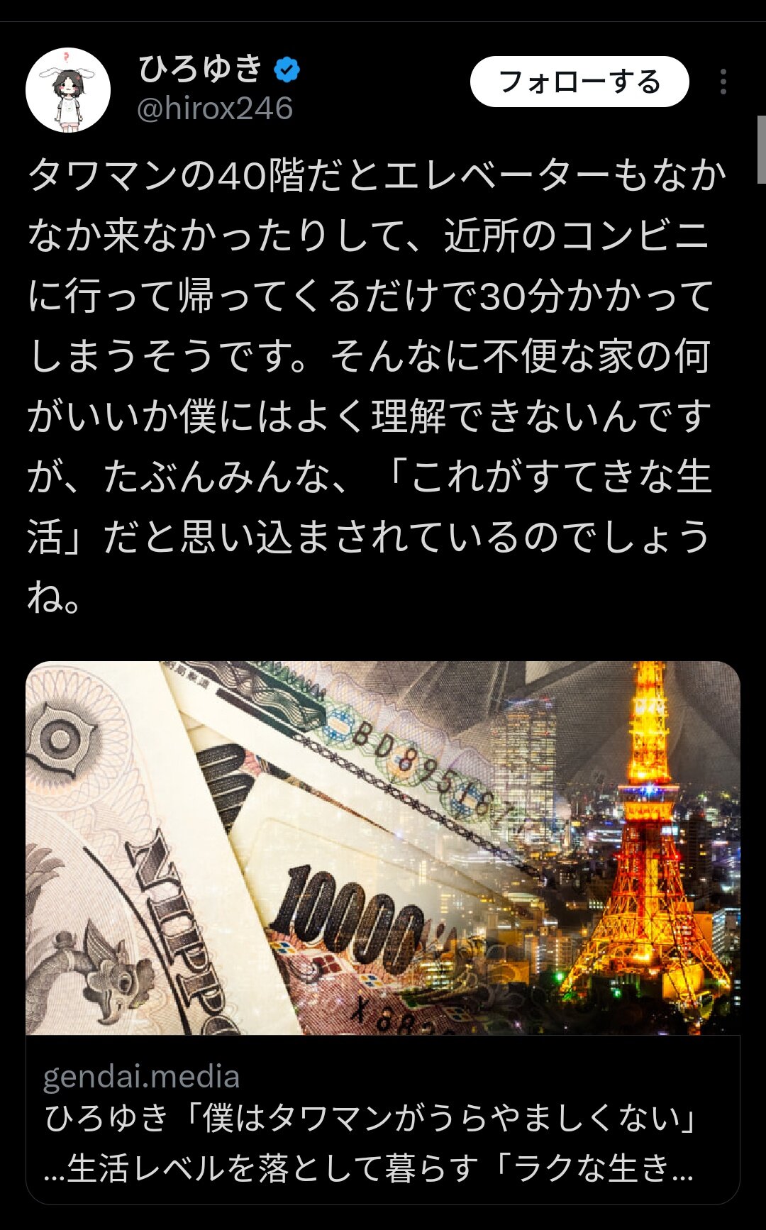 ひろゆきが叩いてるってことは、逆にタワマン買った方が正解ってこと