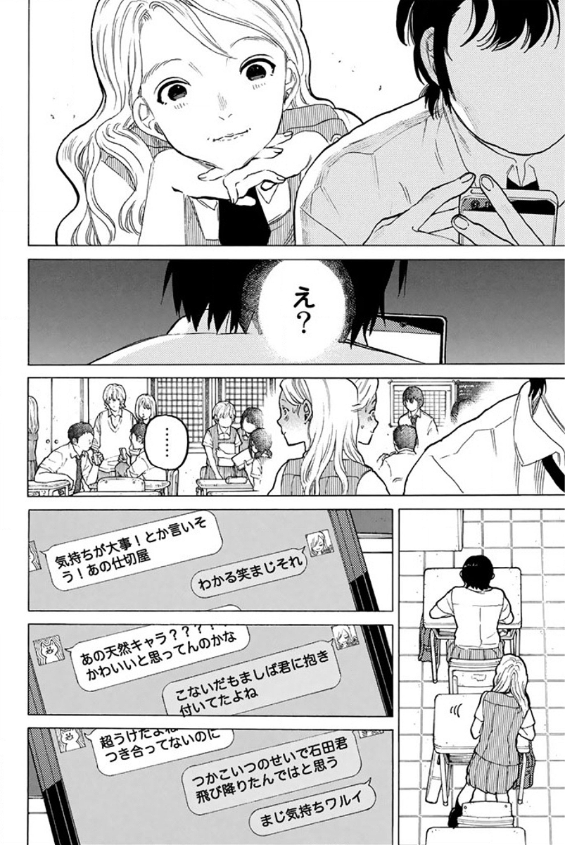 まあ植野の主張、つまり硝子が平和なクラスに入ってきたせいで人間関係めちゃくちゃになって壊れたってのは一理あるしな