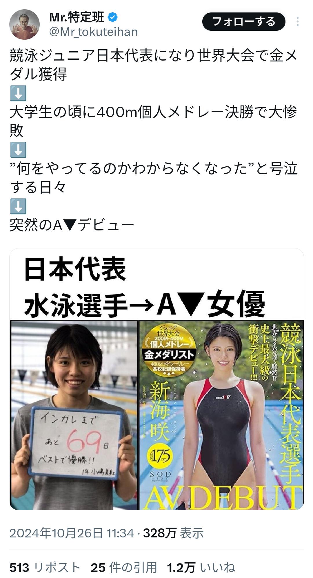 はえー水泳界って負けたらAV堕ちしなきゃいけない過酷な世界なんやなあ