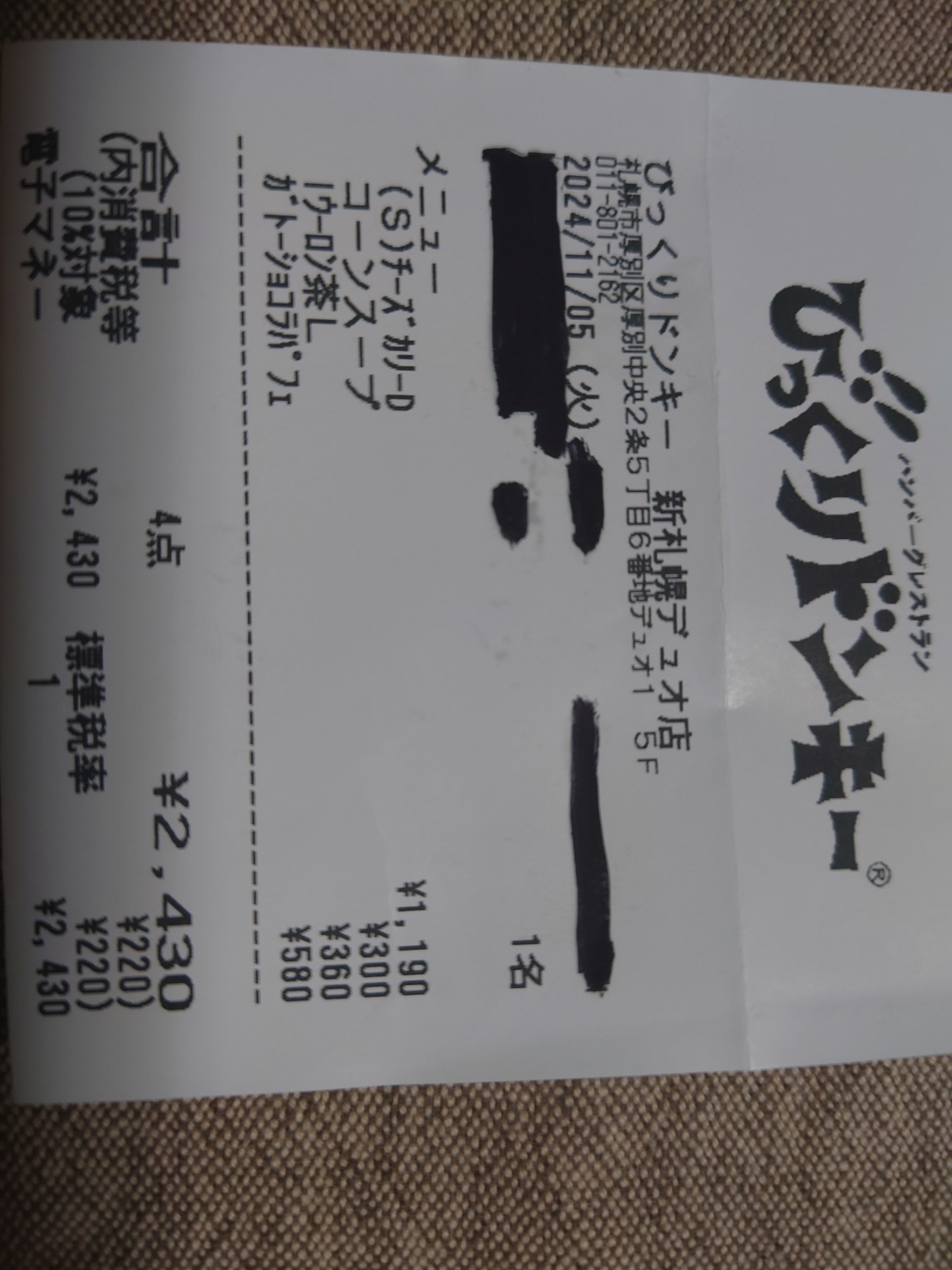 ガトーショコラパフェは580だったよ、フヒィ