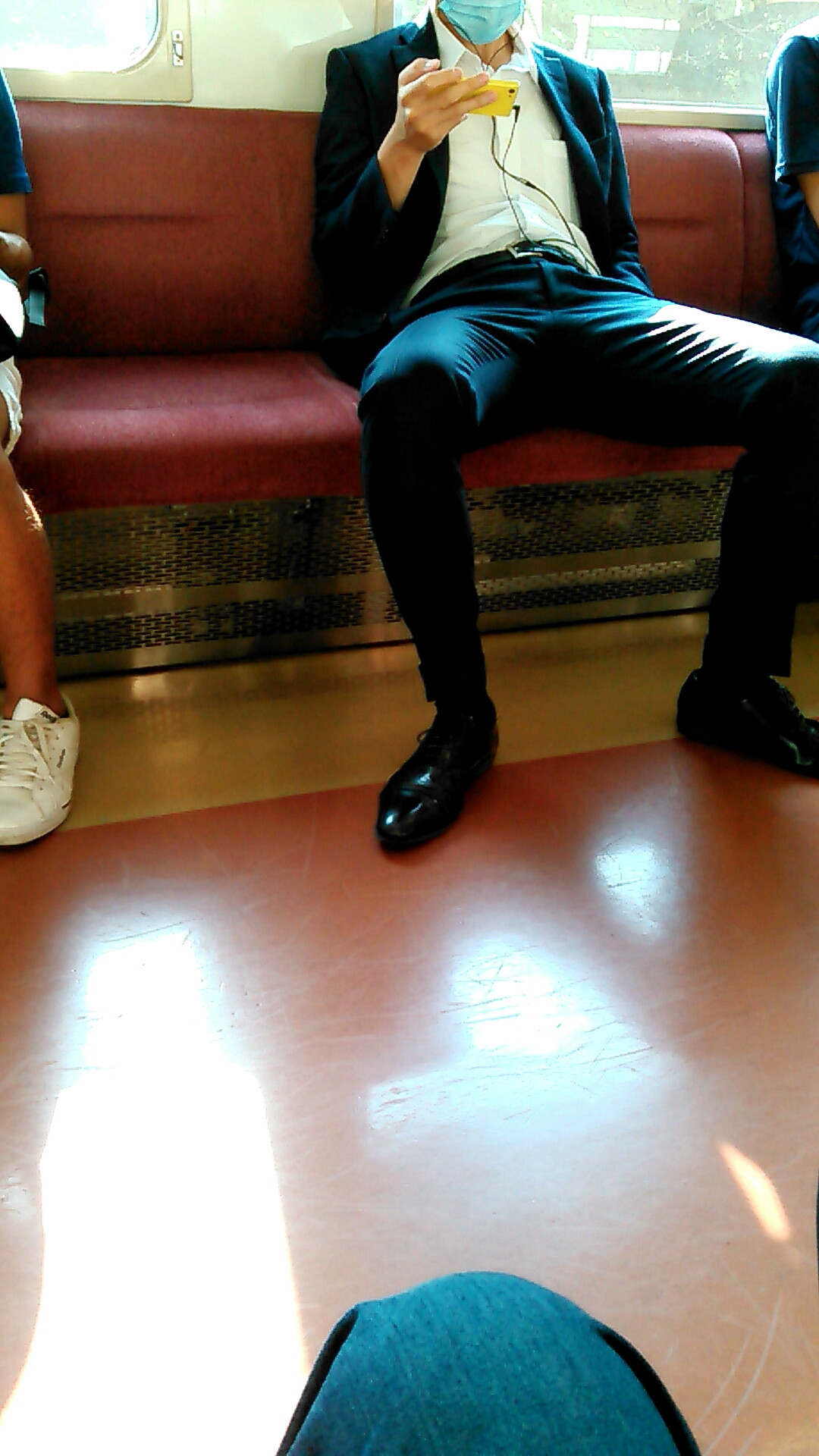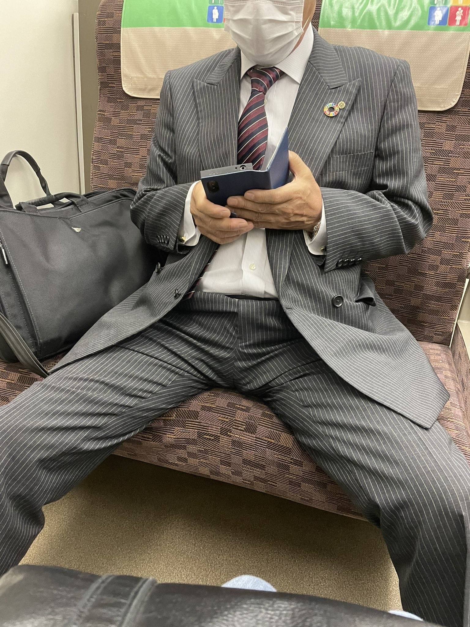 脚交差すると細く見えるらしいぞ