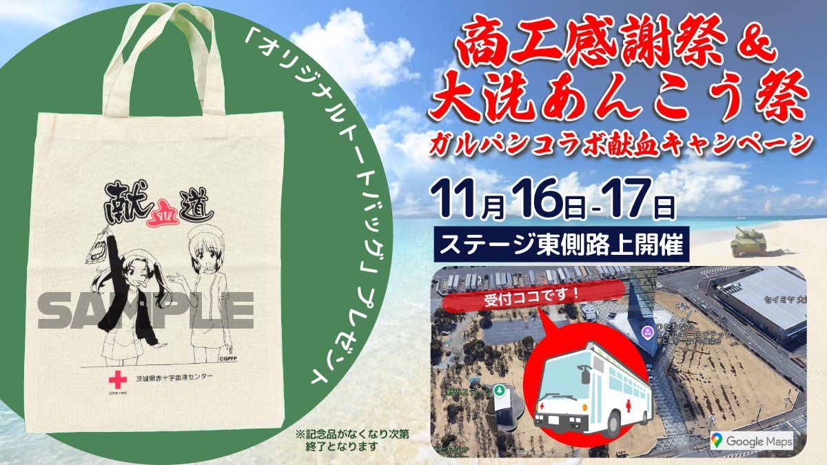 大洗あんこう祭りの献血コーナー。
