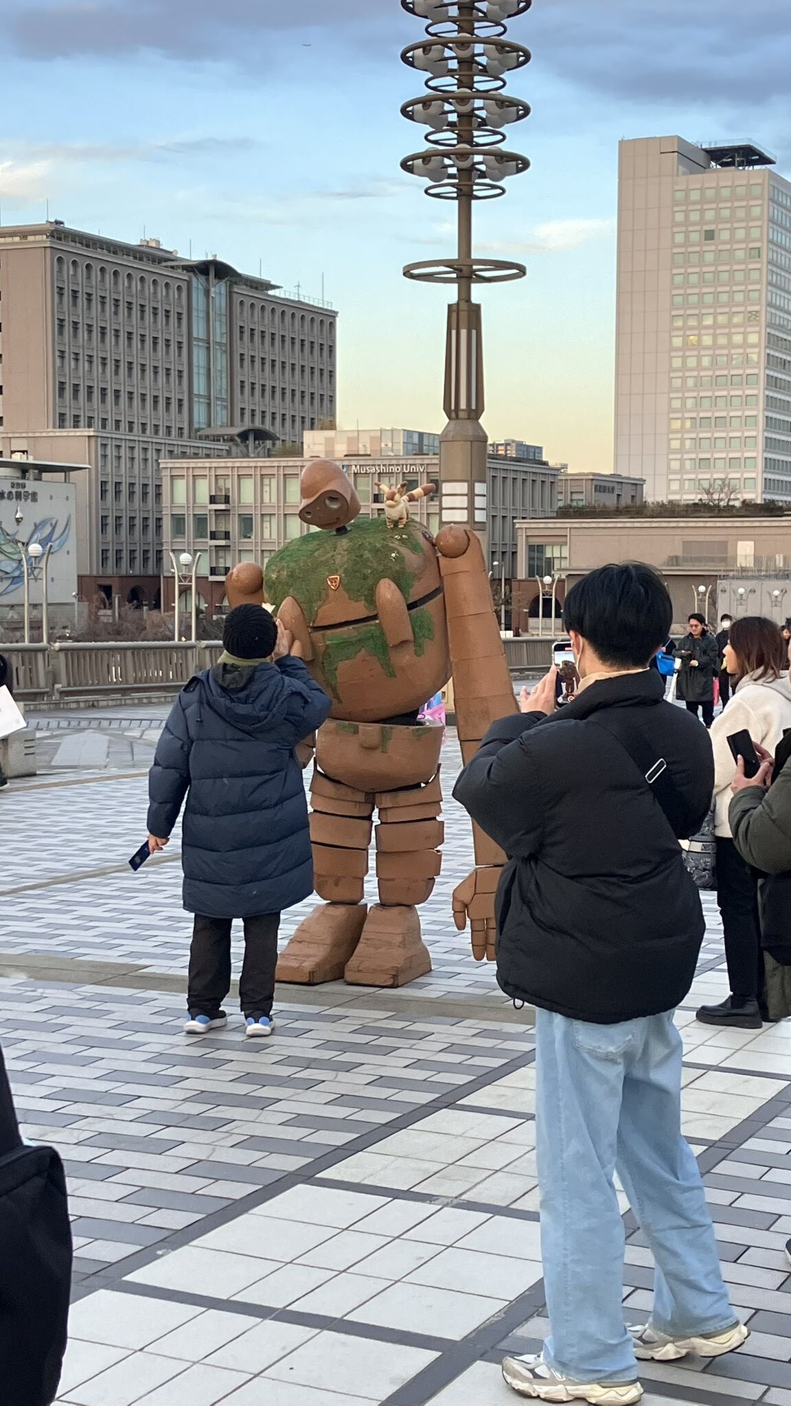 前に立つと手の花渡してくれるギミックあるし1日中歩き回ってたらしいから現実的なサイズやと思うで