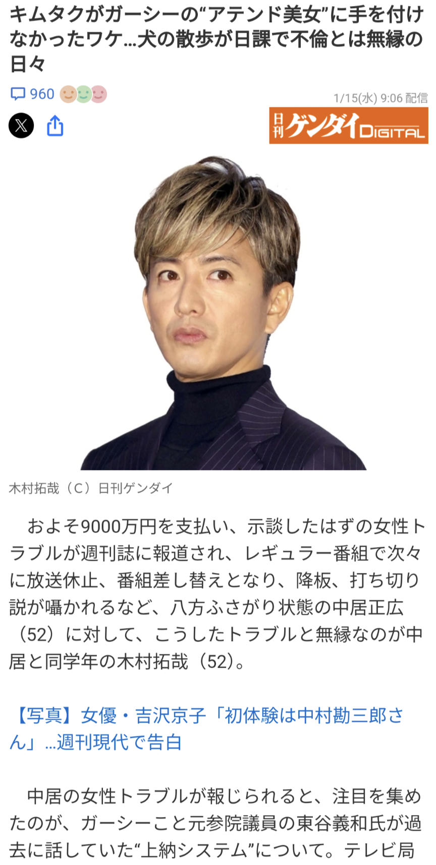 信じられるのは性接待に応じずに反感買ってマスコミから叩かれてたキムタクだけなのか