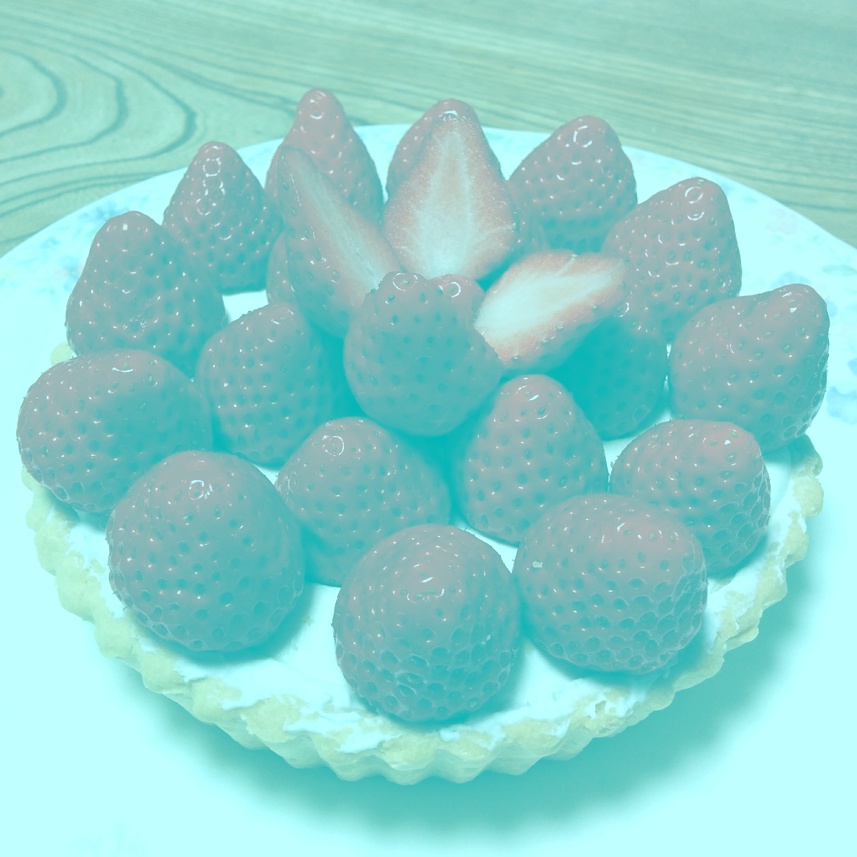 このイチゴタルトの画像もイチゴ部分は拡大するとグレーだけどちゃんとイチゴは赤く見えるやろ