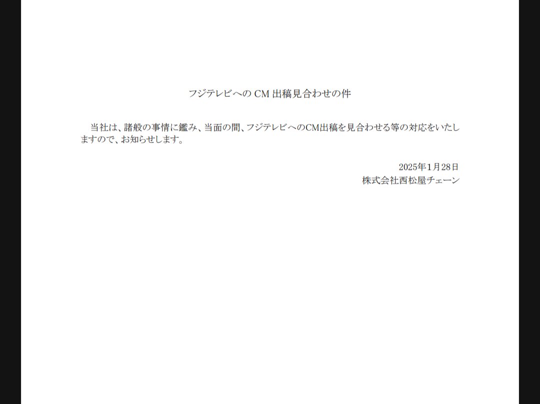 西松屋チェーンが、フジテレビのアニメ「サザエさん」へのCM出稿を見合わせることを明らかにしました。1月26日放送では、大半のCMが差し替えられる中、唯一「提供」していましたが、2月2日放送では西松屋提供のCMも放送されなくなる見込みです。https://t.co/rdcWw9gfhj