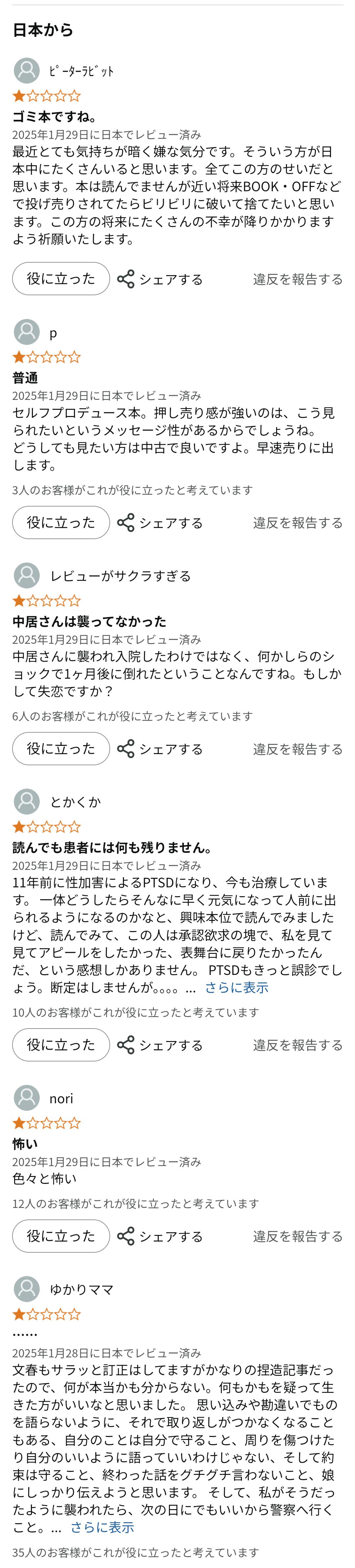 誹謗中傷レビューじゃ垢停止まではさすがにいかんか