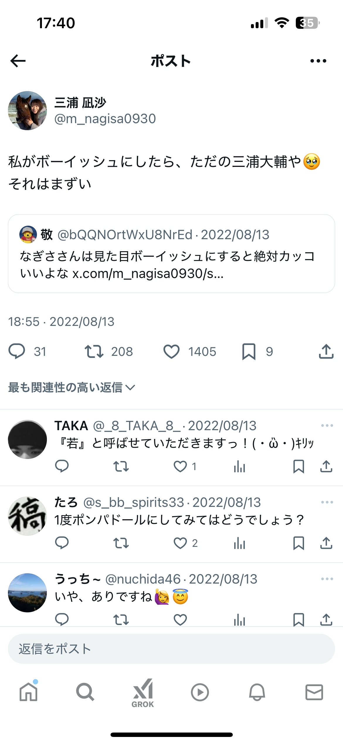 三浦凪沙で検索したのに大輔の顔デッカく出てきて草
