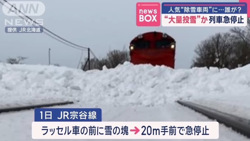 雪煙に邪魔されないよう列車を止めて撮りたかったんだろ