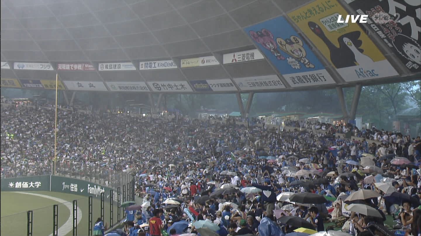 なんでコイツらドームで傘さしてんの?wヤクルトファンかよ