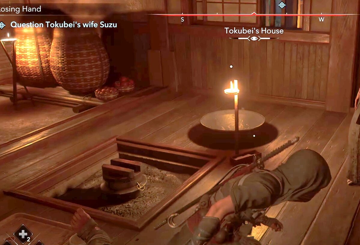 囲炉裏に釜が置いてあるものおかしいが、横のロウソク立て?はなんや