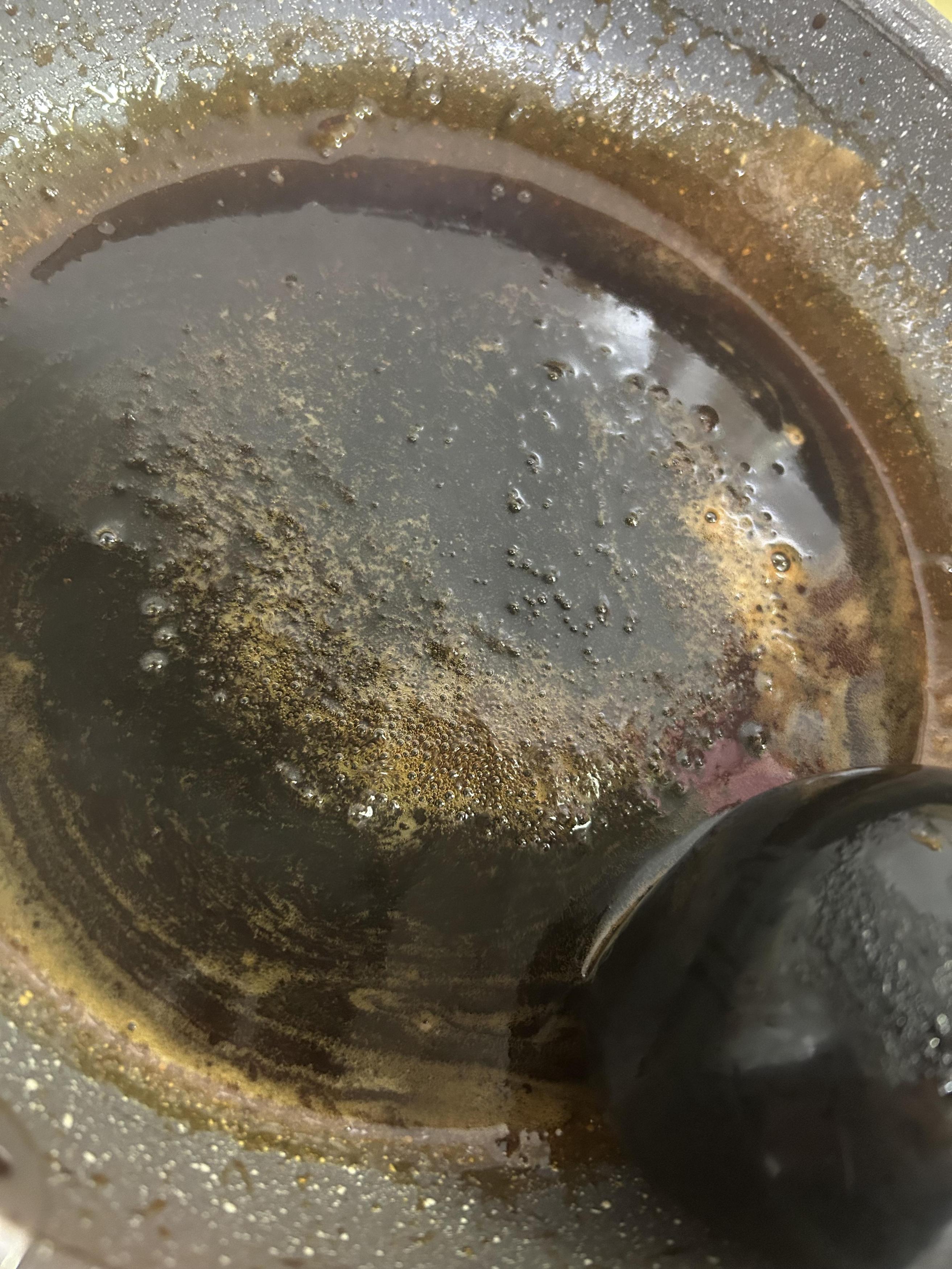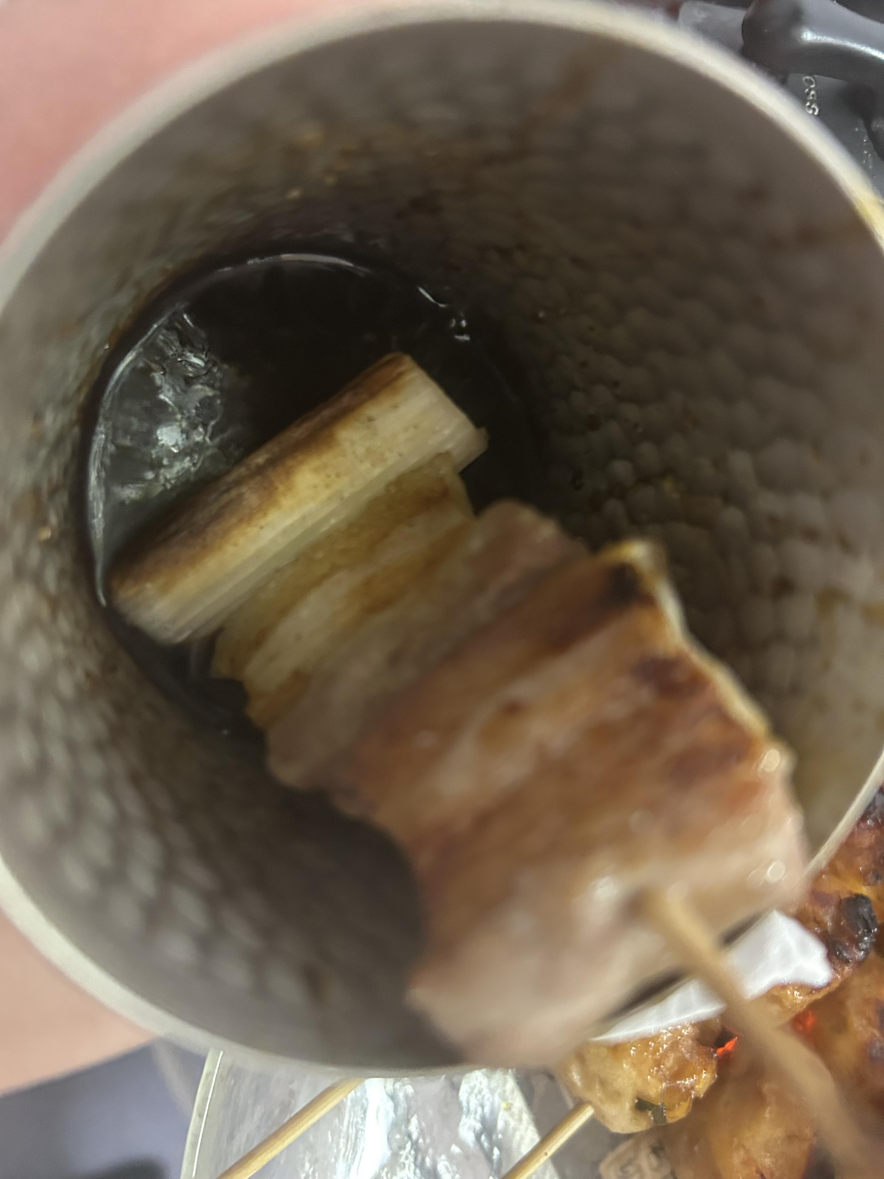 タレを煮詰めとろとろになったら、コップに入れます