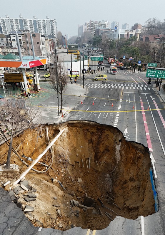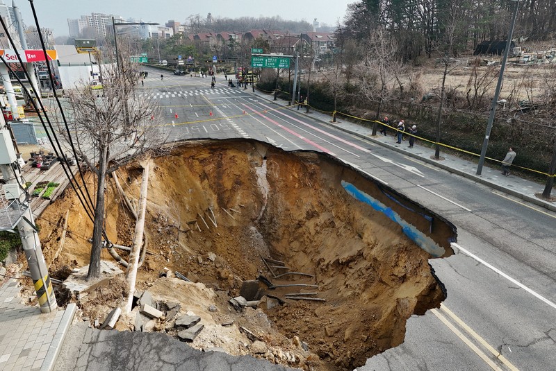 韓国・ソウルの道路陥没 転落のバイク運転手、心肺停止状態で発見 | 毎日新聞