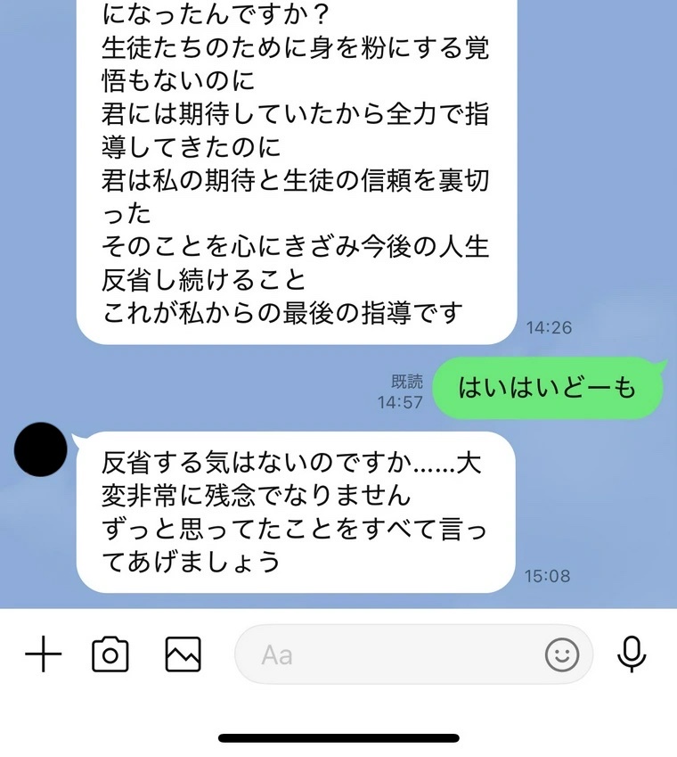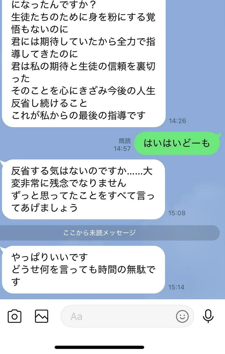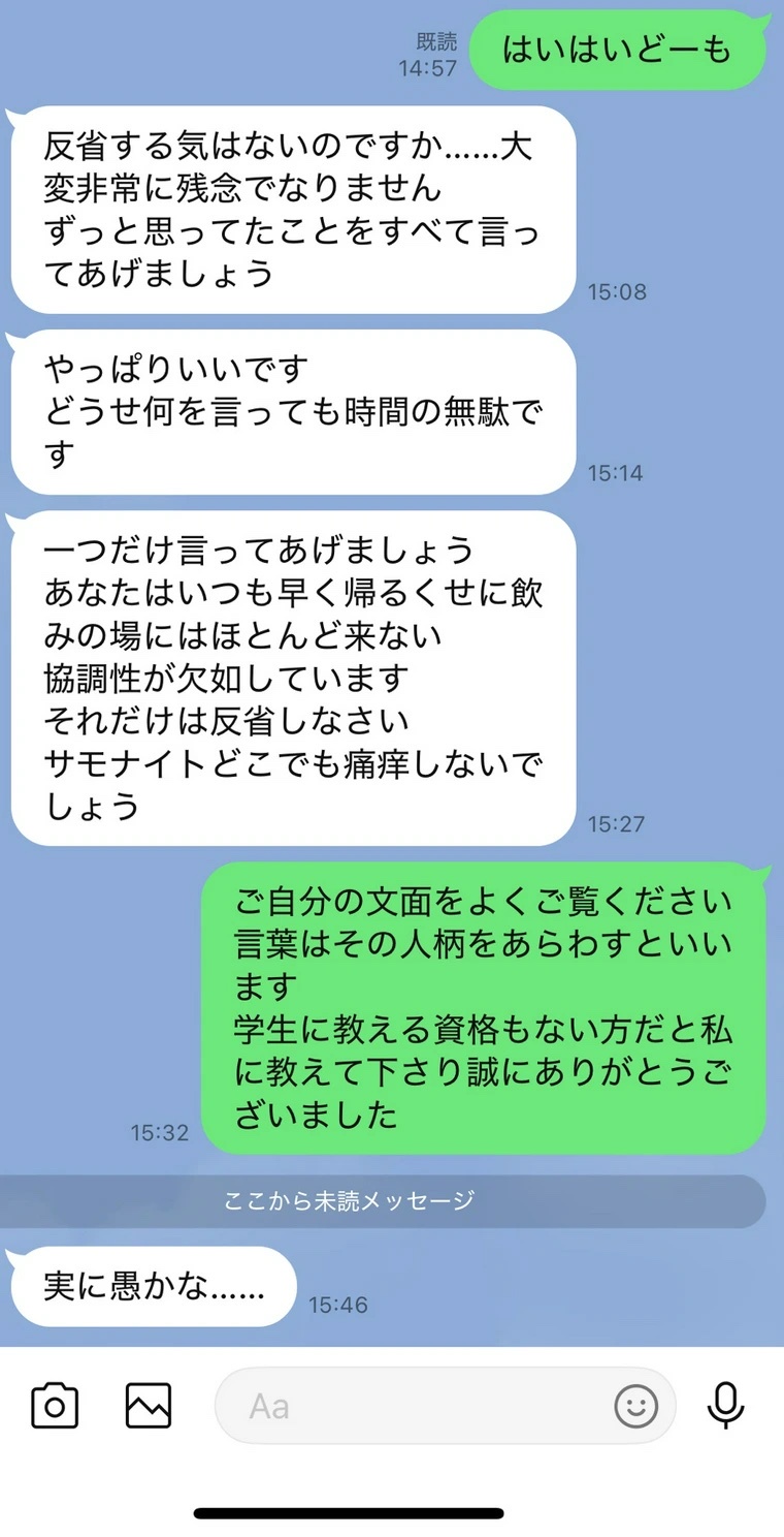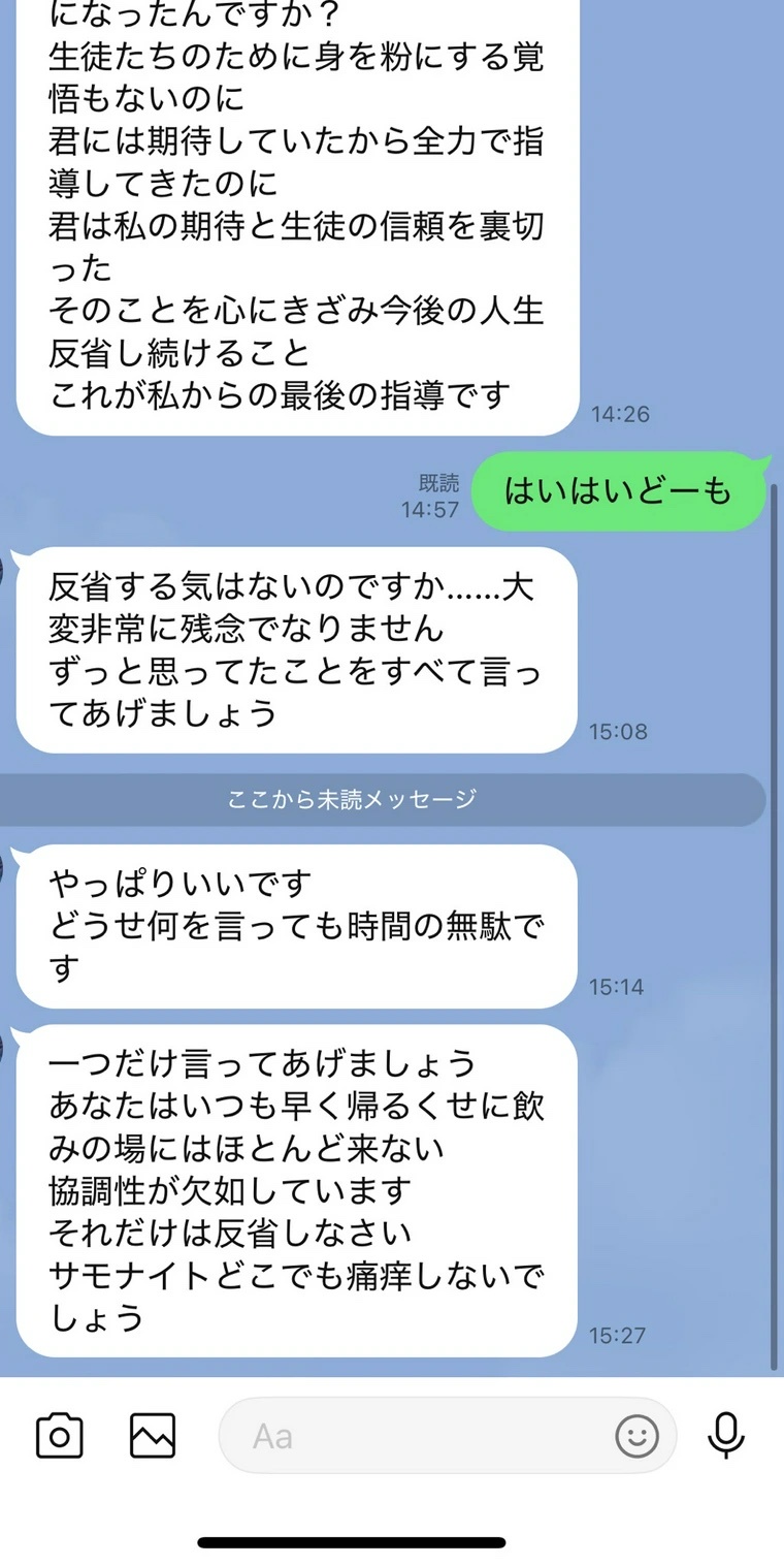 退職してる相手にこんなLINE送ってくるとか指導時もパワハラ凄いしてそう