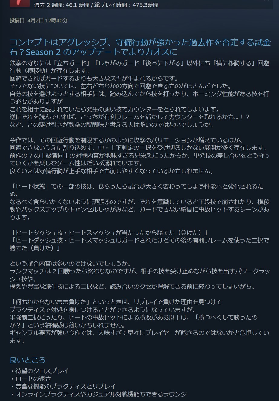 レビュー目通したけど山ステでカサカサしてる過去作の鉄拳信者が発狂してるだけだったわ