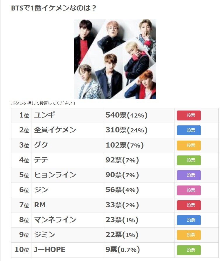 シュガのファンだけBTSの中で異常に若いらしいから投票してる年齢層によるんちゃう