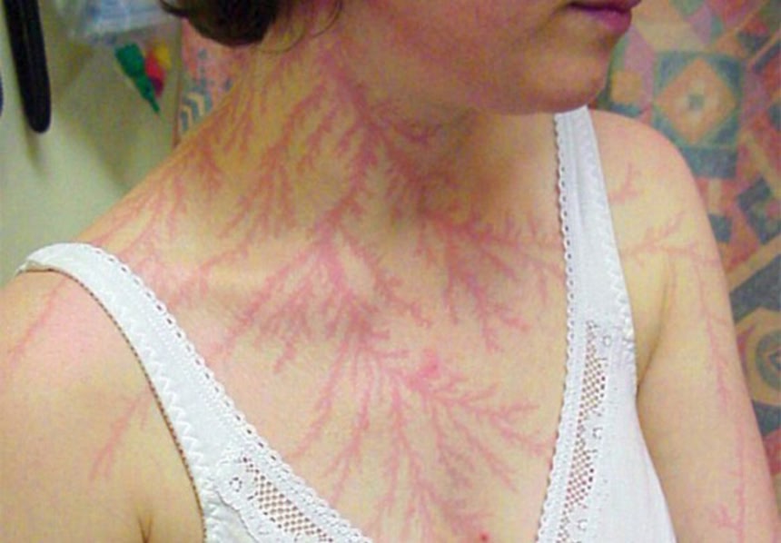 雷に打たれると体にリヒテンベルク図形と呼ばれる跡が浮かび上がるんだよ
