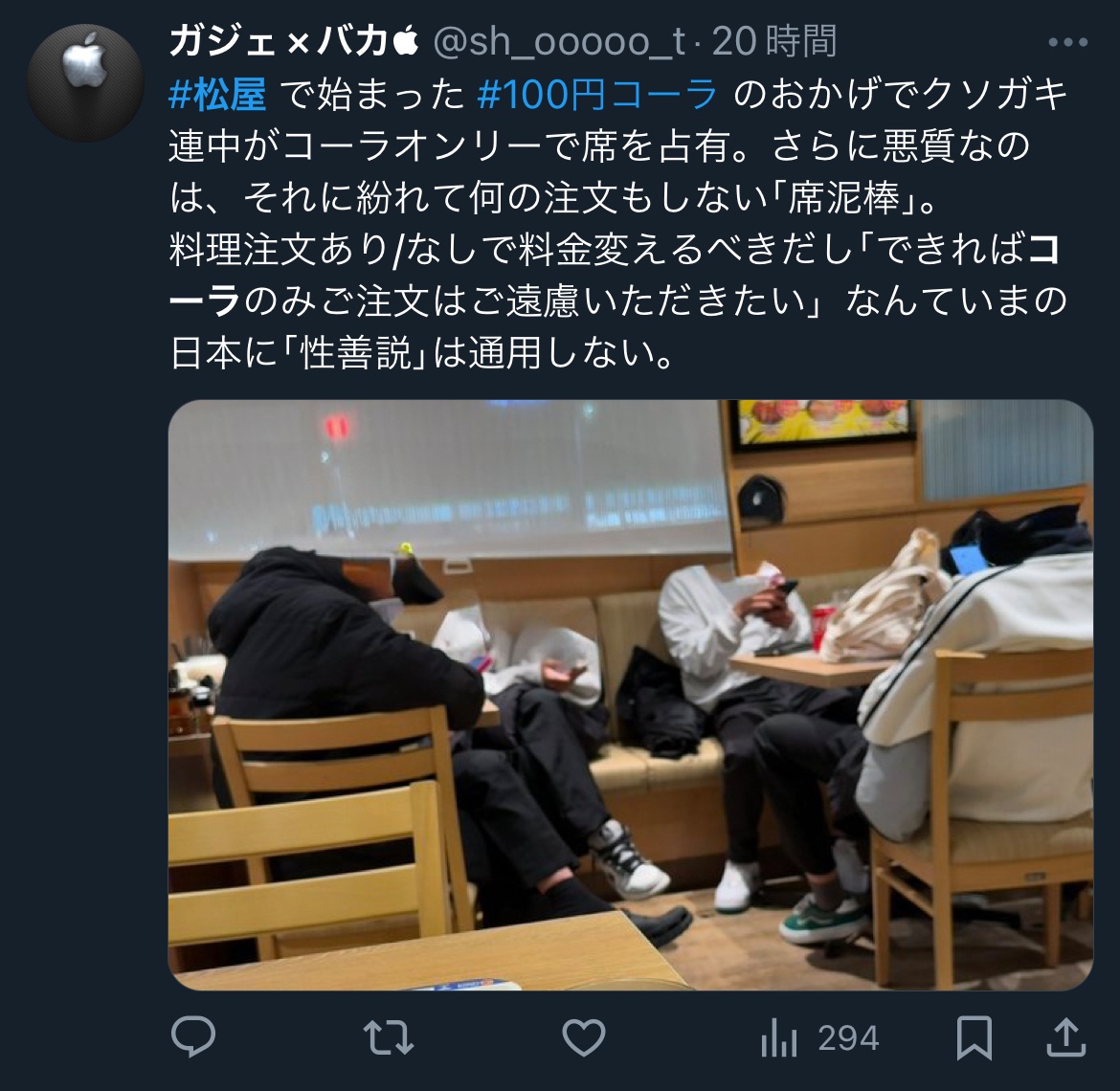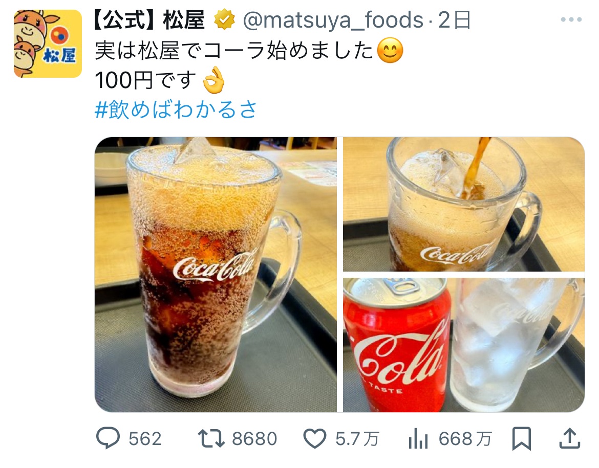 松屋って100円コーラで長時間居座り問題とかあったよな