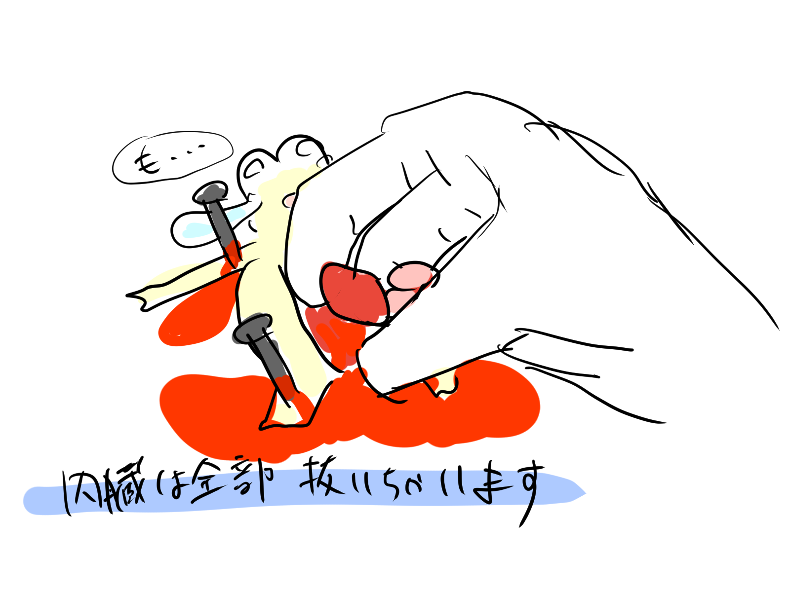 なんで内臓全部もがれた上で皮剥がれた時点でまだ息があるんですかね生命力高すぎんよ