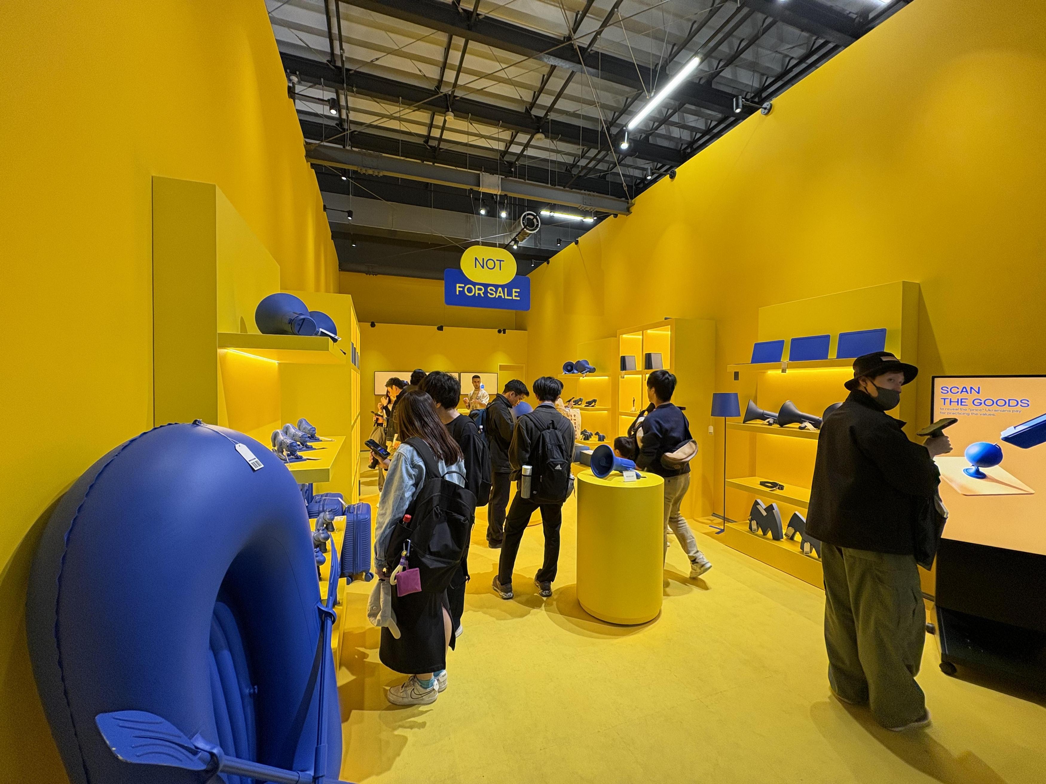 展示は貸し出されたバーコード読み取り機で商品のバーコードを読み取るとウクライナの現状が映し出されるという内容