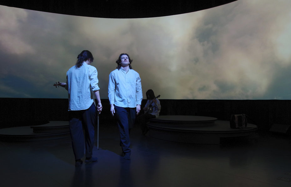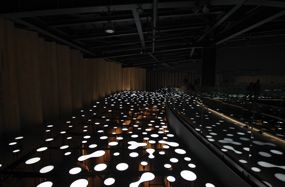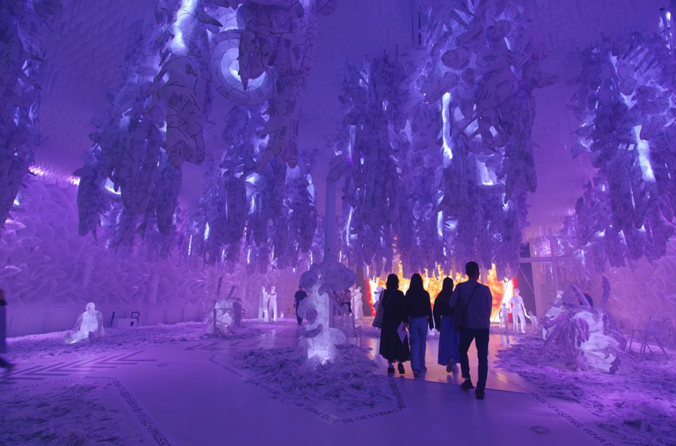 「我々の存在の真意とは。」というテーマのアートが出迎えてくれる
