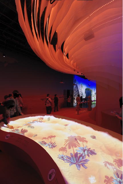 …という内容の映像を見せられるパビリオン