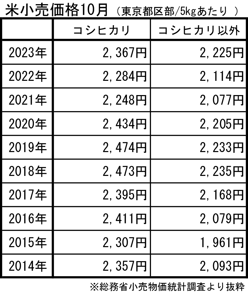 ここまで新米の値段変わってないなら値上げしても文句言うなよ