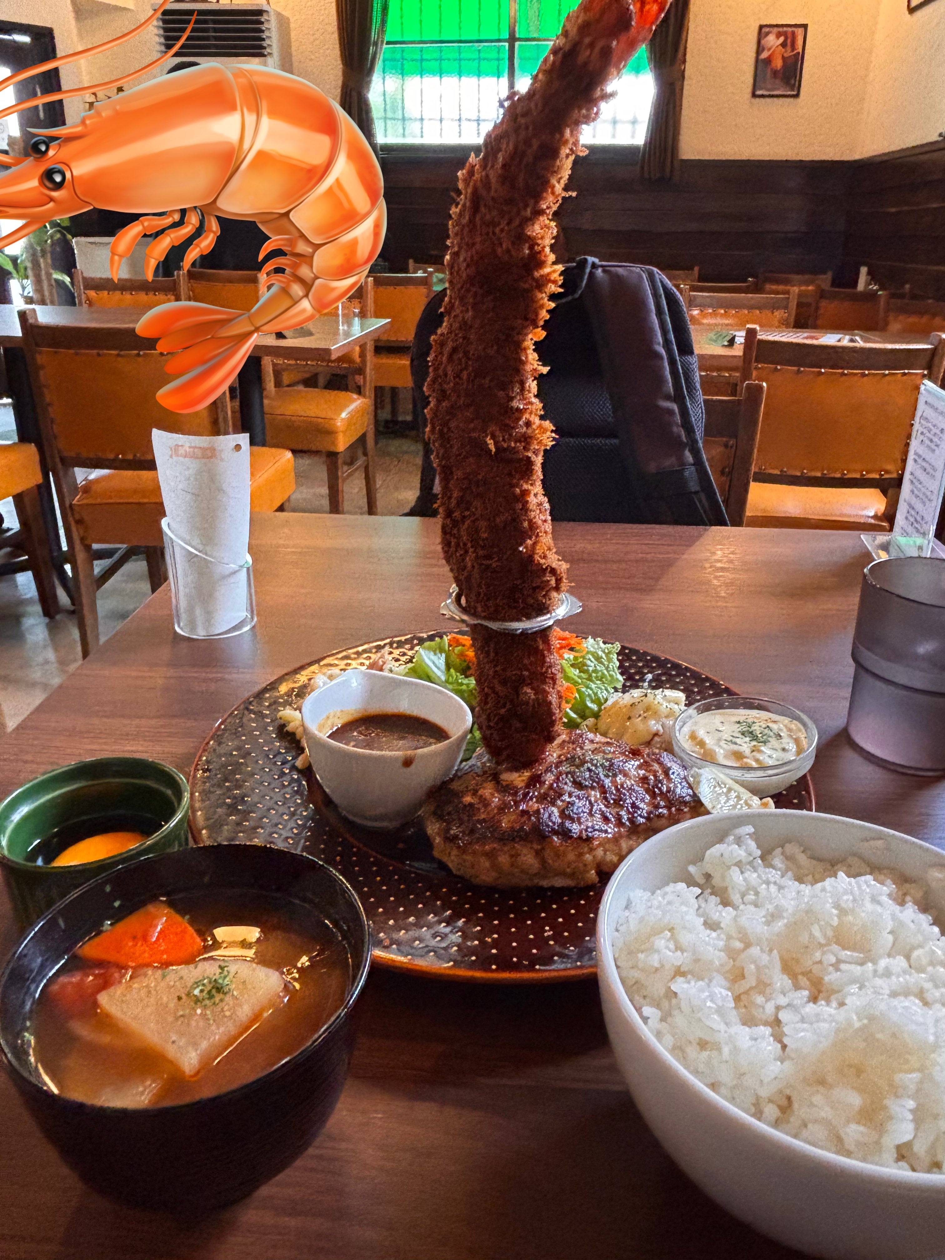 神戸ハンバーグウエストという店で提供している巨大エビフライ