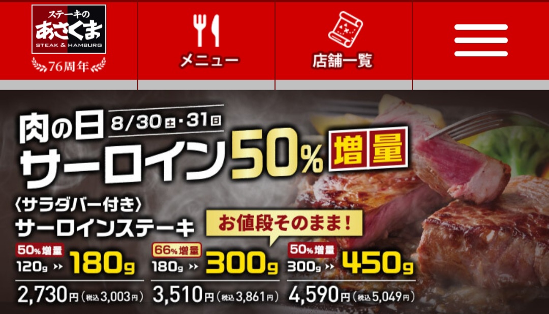 あさくまは明日明後日肉の日でサーロインがお得やで