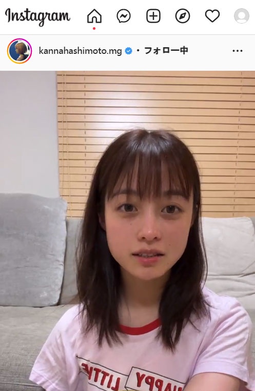 橋本環奈「すっぴんで失礼します」パシャッ