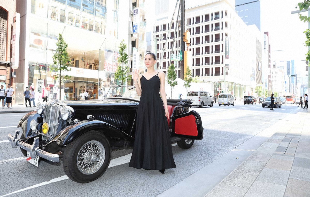 【芸能】綾瀬はるか クラシックカーで銀座に登場 セクシードレス姿で出演映画PR