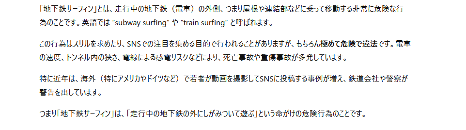 地下鉄サーフィンて何やと思ってる調べたら野蛮すぎて草