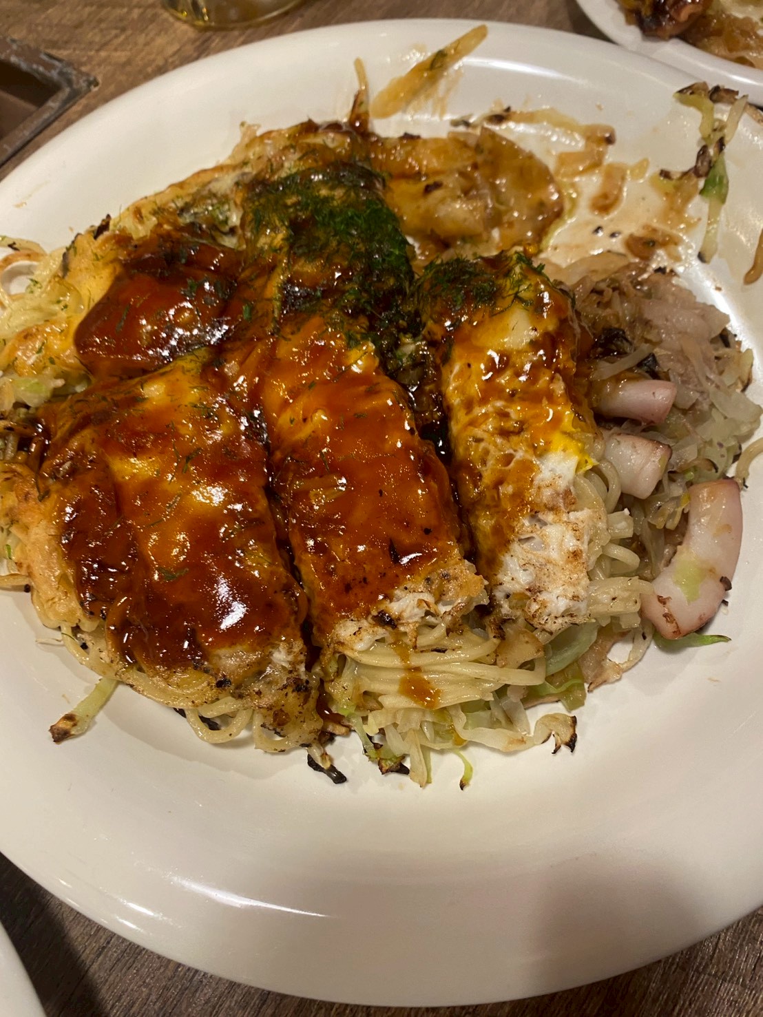ちょっと食いかけだけど広島風お好み焼きも美味しかった