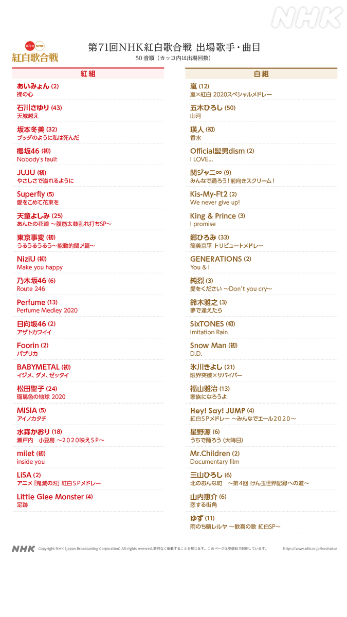 — NHK紅白歌合戦 (@nhk_kouhaku) December 21, 2020
