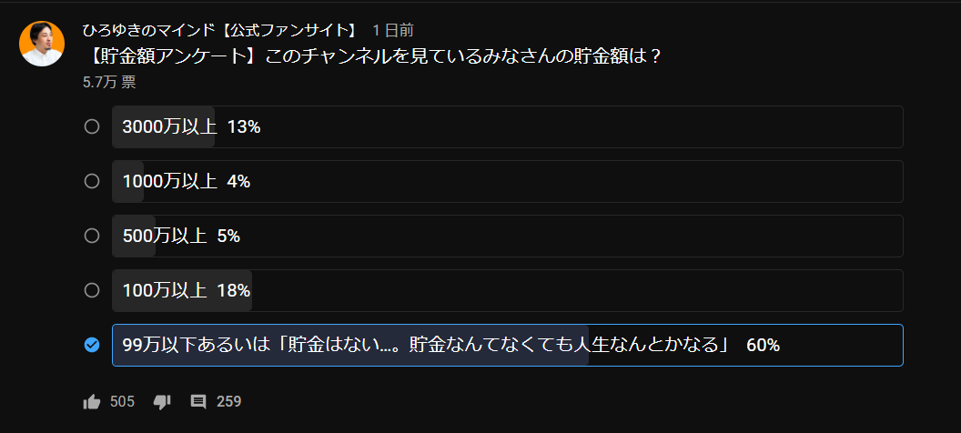 引用元: ひろゆきのYouTube見てる奴、51%が99万円以下の収入あるいは無収入だった