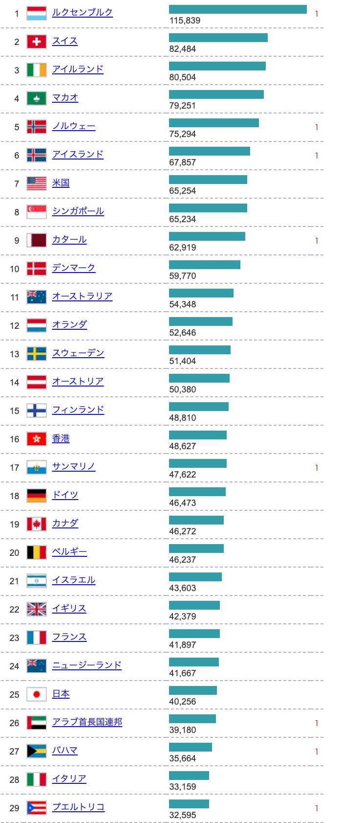 ちな1人あたりGDPランキング