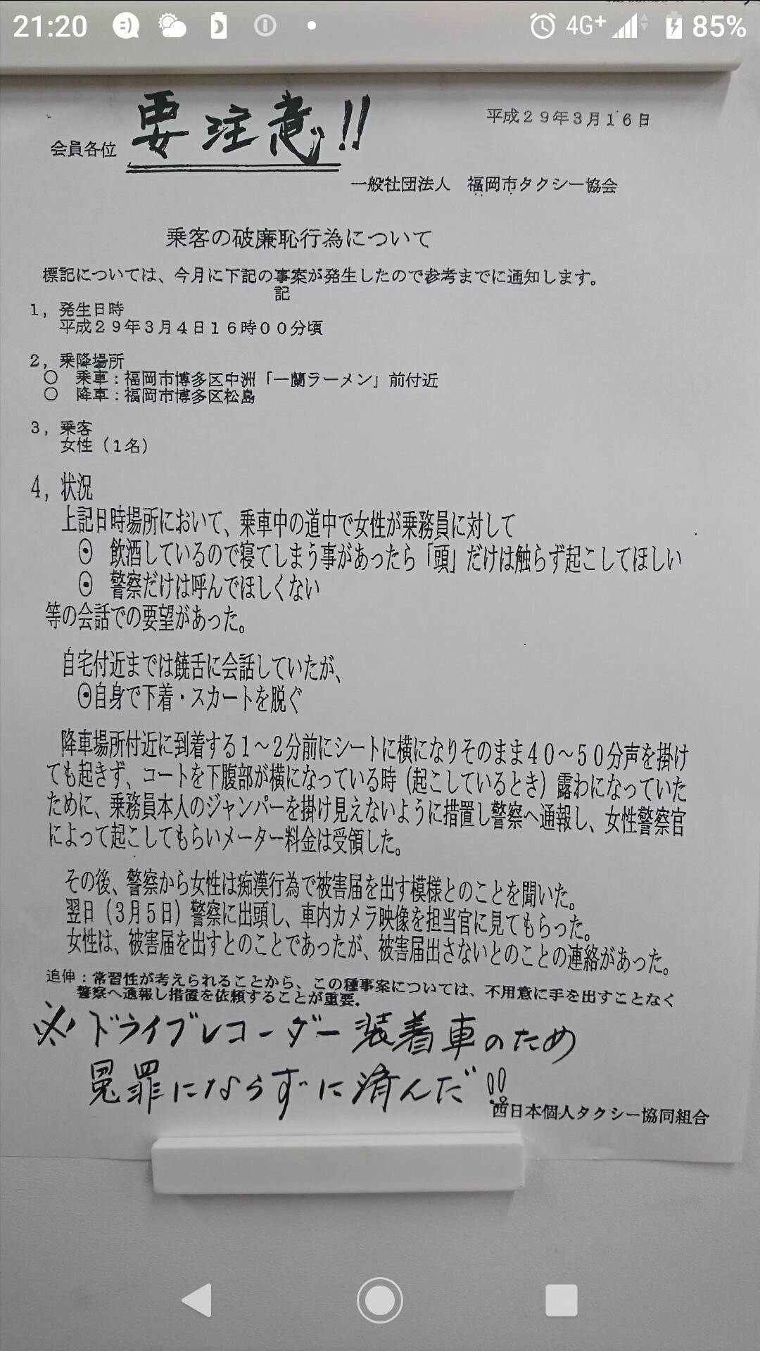 ※ドライブレコーダー装着車のため冤罪にならずに済んだ!!