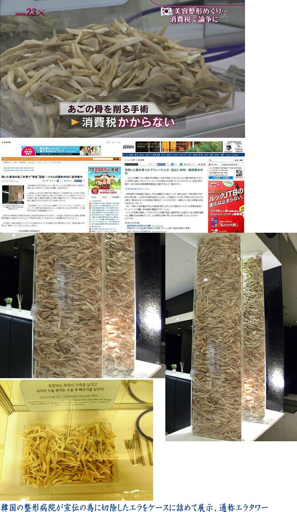韓国人は整形も無駄にしない、削ったエラを宣伝に使う通称エラタワー(エラ塚)