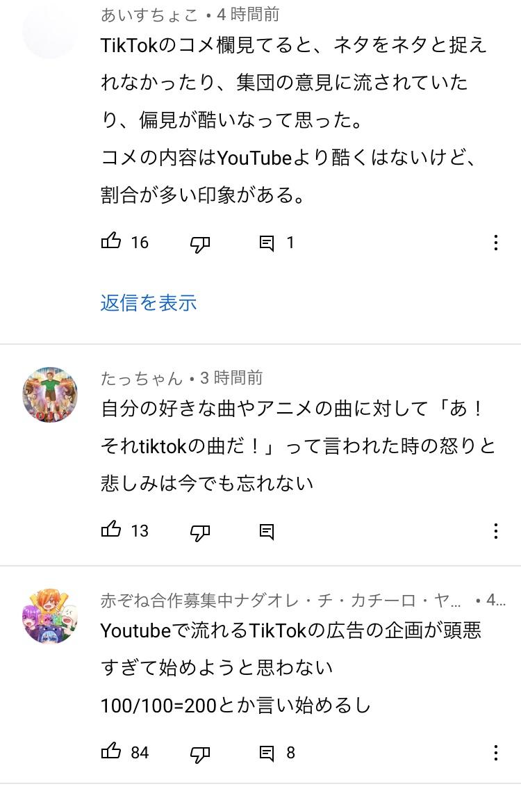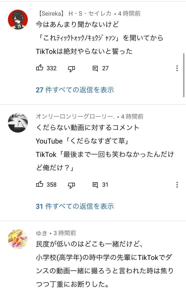 隙あらばコメント欄で自分語りしてる奴等がTikTok批判は笑うわ