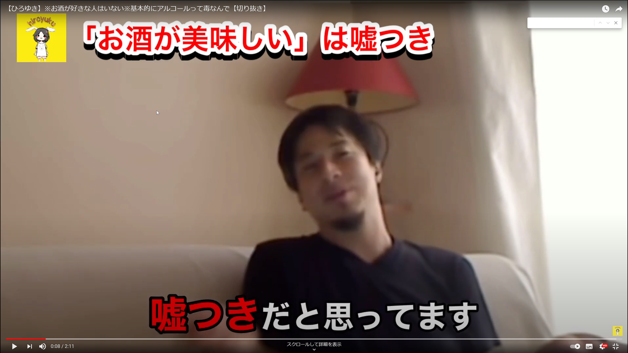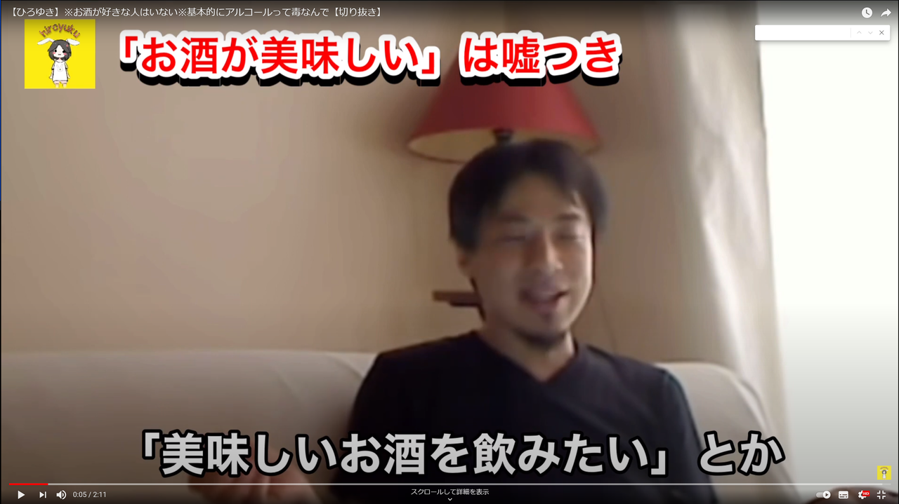あれ、ひろゆき本人が酒好きいうてなかったっけ
