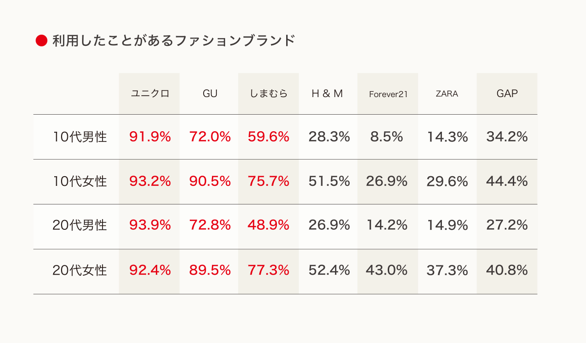 利用したことがあるファストファッションブランド