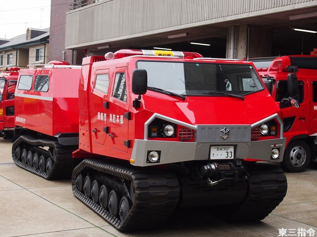 まずは全地形対応車両「レッドサラマンダー」。岡崎市消防本部に配備されたもので、