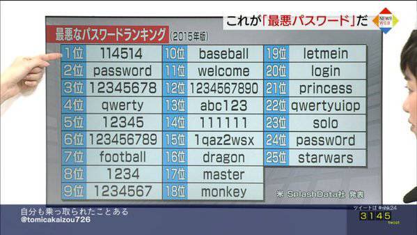引用元: 【悲報】最弱のパスワード、発表されるWWWWWWWWWWWWWWWWWWWWWW